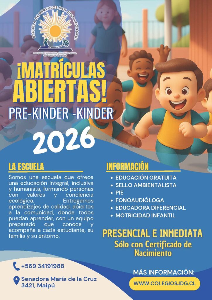 En el año 2007 La Escuela de Párvulos “San Juan Leonardi”; Este centro educativo recibe y forma a niños(as) de nivel Pre básico NT1 y NT2 con el fin de formar alumnos integrales, autónomos y capaces de desarrollar habilidades que les permitan facilitar la transición a los desafíos que implica la educación general básica, basados en valores y principios católicos cristianos